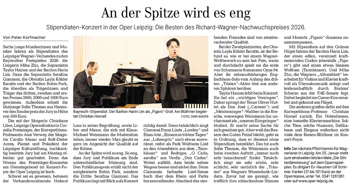 Leipziger Volkszeitung, 23.01.2025: Wagner-Preis für Tenor aus Hannover